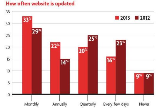 What are we to make of the disconnect between attitude toward websites and maintenance of the sites? According to the poll, those who seldom update often worry about the time involved. That’s a similar concern for those who aren’t active on social media such as Facebook or Twitter. They also cite a lack of knowledge about social media, or they believe their customers, many of whom are older, wouldn’t be using social media anyway.