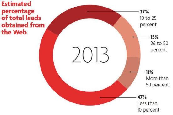 Other issues of interest to industry professionals, of course, are leads — aren’t they always? — and online retailing. While nearly half of the 2013 survey respondents estimate they get less than 10 percent of their total leads from the Web, 53 percent are doing better, ranging from those who get 10 to 25 percent of their total leads online to a hefty 50 percent-plus.