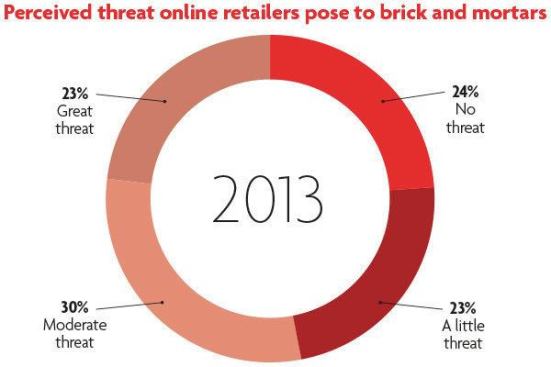 Interestingly, respondents are almost evenly split on the question of whether online retailers pose a danger to their businesses and, if so, how much. It has been a hot topic in recent years, but maybe brick-and-mortar store owners are feeling less threatened.