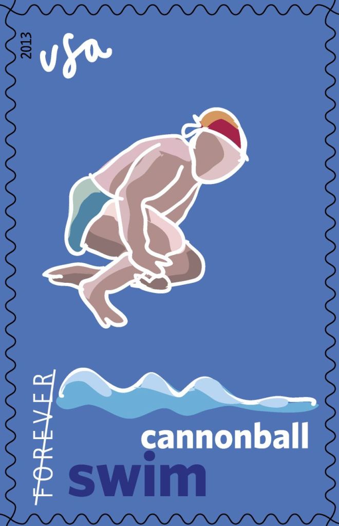 To key into First Lady Michelle Obama’s “Let’s Move!” campaign, a “Forever” stamp series has been created by the U.S. Postal Service. The 15 physical activity stamps had made it to the printer, but were put on hold after the President’s Council on Fitness Sports and Nutrition and officials at the Let’s Move campaign reviewed them and deemed three to be promoting unsafe moves — a swimmer cannonballing into a pool (shown), a skateboarder sans kneepads and a kid doing a handstand without wearing a helmet. The decision to destroy or issue the postage stamps will be made next year.