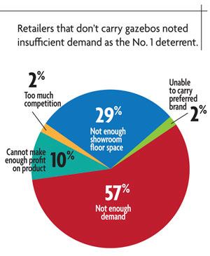“Folks that invest that dearly in a product like that want to be able to use it year-round regardless of weather,” he says. “If you are going to handle gazebos, make sure it’s a good quality that is going to stand up to the conditions that people buy them for.”