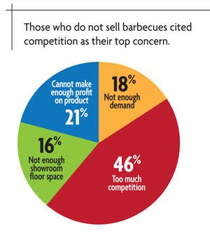 In fact, of the nearly 500 pool and spa dealers who participated, 55 percent do not sell grills, while more than 70 percent don’t carry saunas, patio furniture or gazebos.