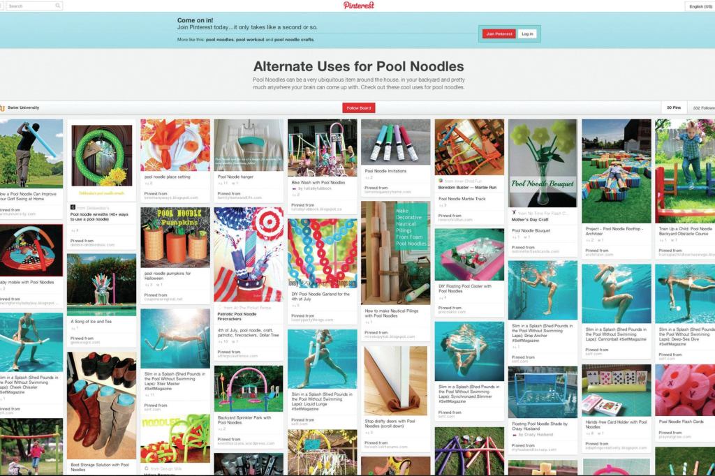 Boards are what categorizes your pins. For instance, if you find a website that has a great image of how someone turned a pool noodle into a golf swing aid, you can pin it to a board you create called “Unique Things You Can Do With Pool Noodles.”