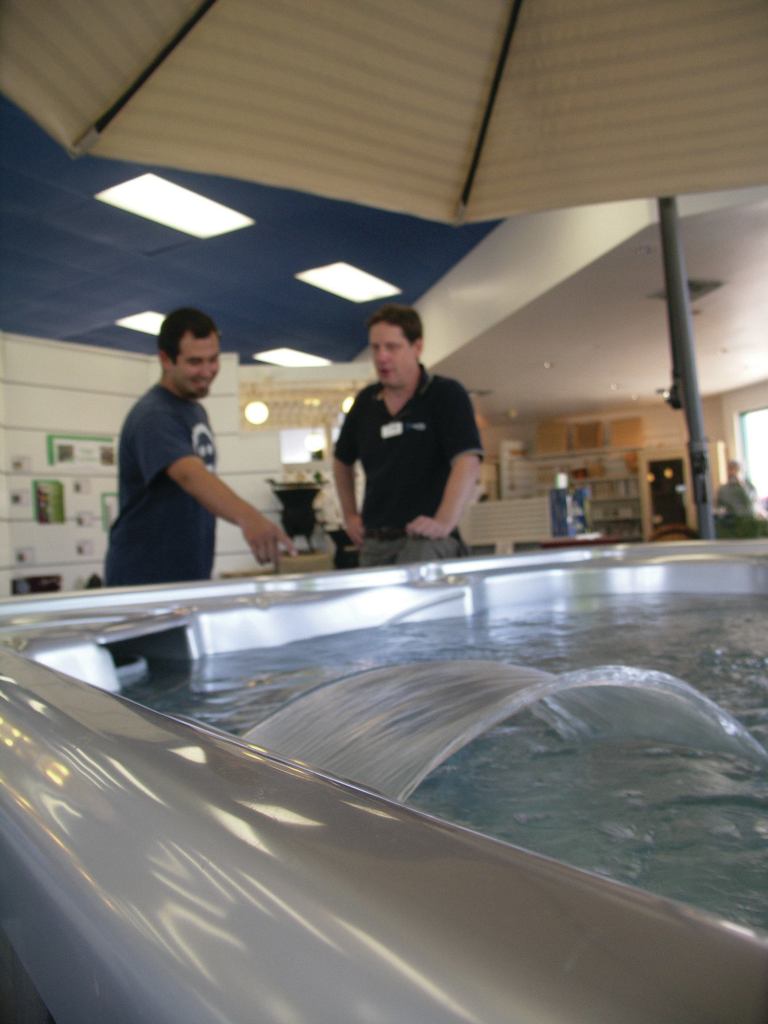 “When they may come in and we may show them a higher-priced spa, when we realize that their price point they’re looking to spend is a little bit lower and we bring them over, they will then ask, ‘Does this have a waterfall? Does this have this? Does this have that?’” Geibert said. “And when they find that they’re getting what their wish list is in terms of features, their apprehension gets reduced.”