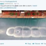 @SwimNerds couldn't help geeking out with this shot of his pool cover post storm. Whether this one gives you chills thinking about the allergies an insect as large as this could cause, or it reminds you of a 1950s insect horror film gone bad (wait, are any of