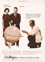 The formal clothing of the homeowners, the salesman-turned-scientist and the futuristic look of the filter made this 1963 ad truly indicative of the times.