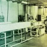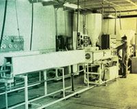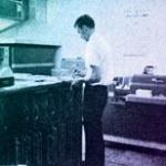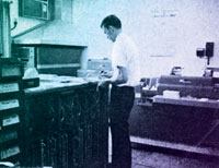 Here, a Swimquip employee works on an early IBM computer in 1965. In the left-hand corner is the “memory storage bank,” and to the right is the “main console.”