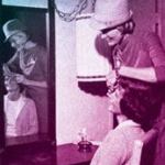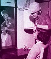 In this photo, Mrs. Bernie Lenz (standing) gives Mrs. Brackston Whitaker, chair of the women’s activities for the 1967 NSPI convention, a preview of the upcoming demonstration on the use of false eyelashes. The topic was to be part of the ladies’ program.