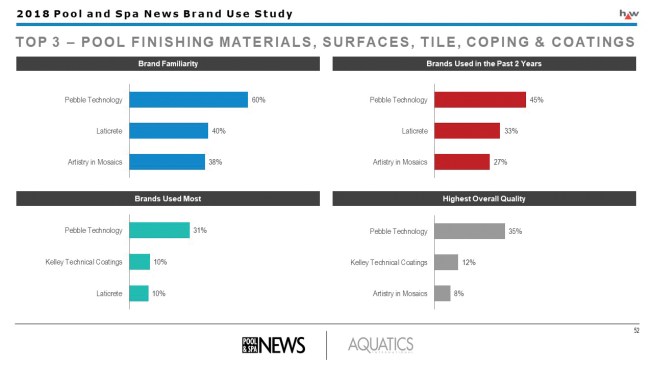 In this installment, we cover the inground and aboveground pool-related brands used most and perceived as having the highest quality. For more results in these categories, see our online coverage.