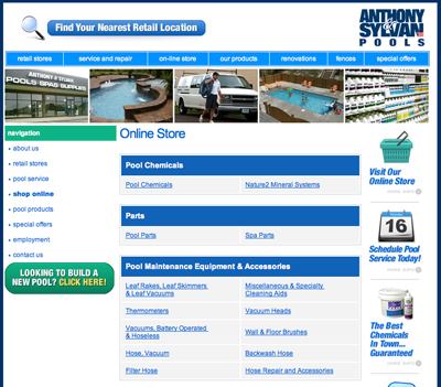 The online store features thousands of products in a number of categories, including pool and spa parts, toys, lighting, maintenance equipment, accessories, and chemical feeders. In addition, customers can purchase gift cards, schedule maintenance and receive information about special offers and discounts. Pricing will be competitive, Neidus said.