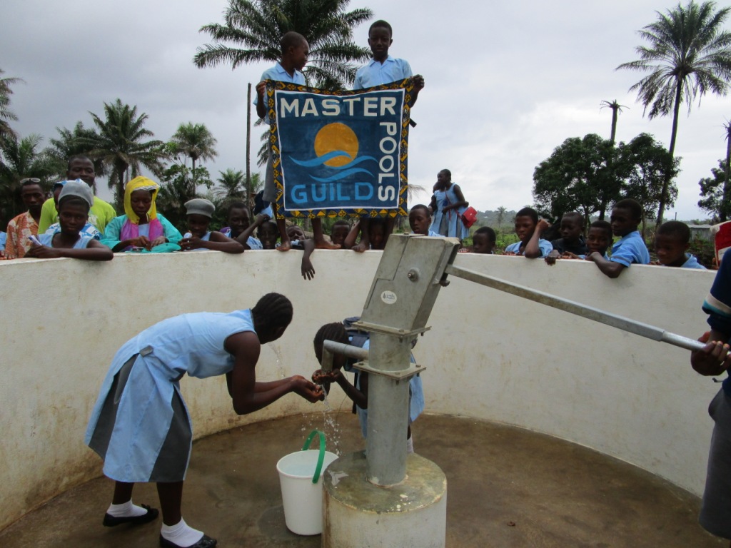 Last year, Master Pools Guild took on the cause of delivering clean, drinkable water to parts of the world that need it by joining with The Water Project, a nonprofit organization serving sub-Saharan Africa. Through its Casino Night at its annual Fall meeting and from taking contributions throughout the industry, the group raised more than $20,000 – enough to fund two wells in Sierra Leone. Both have been installed at schools, where they serve not only the children but also the surrounding communities. In addition to individual donations from Master Pools members, contributions came from Biolab, Hayward Pool Products, Zodiac Pool Systems, PoolCorp, Pentair Aquatic Systems, A&A Manufacturing, PebbleTech and Lonza.