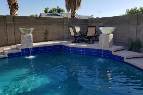 The homeowner hesitated to accept his offer of a free renovation. But, after sleeping on it, she did. Sandoval refinished her pool and deck, replaced the equipment, added lights and even provided some lighted scupper bowls left over from another project. As a finishing touch, she received updates to her irrigation system and shrubbery. Sandoval did this with the help of Hayward Pool Products, Noble Tile Supply, Xcel Surfaces and local plaster and start-up expert Greg Garrett, a fellow veteran.
