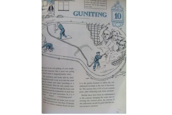 The information contained within its yellowed-with-age pages is detailed, humorous and helpful. It almost reads like What to Expect When You’re Expecting: Swimming Pool Edition. The guide even compares pool ownership to being a new parent: Like a baby, swimming pools are temperamental at first and make gurgling sounds.