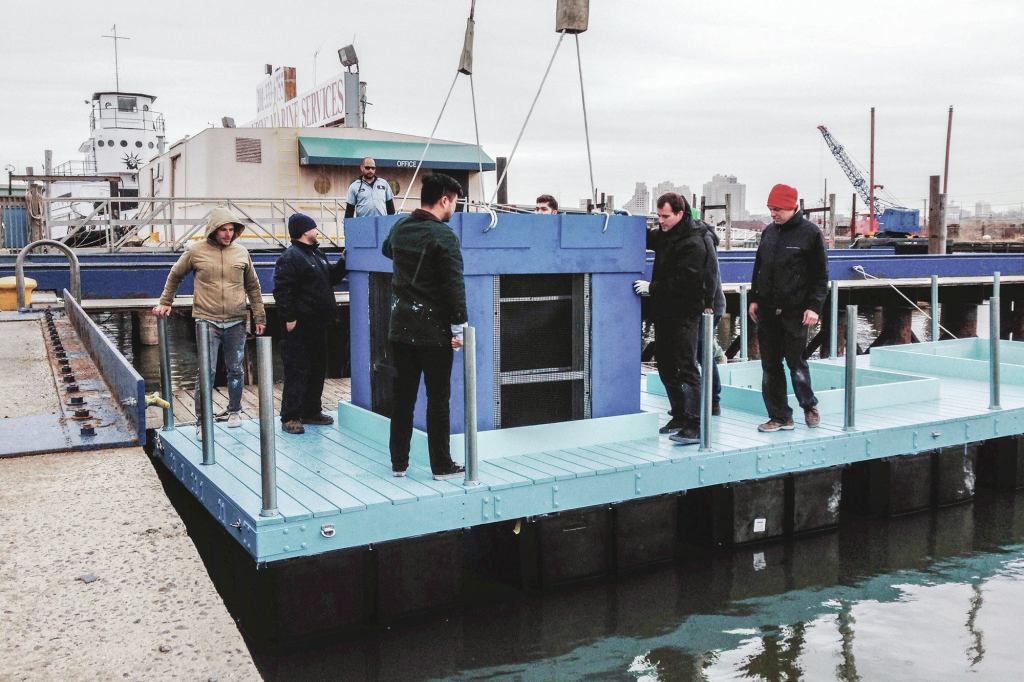 Organizers now are testing the proposed filtration system design and recently placed “Float Lab,” a miniature version of the system, into the Hudson River. The purpose is to not only give the filtration a trial run, but also test the river water itself to see how it measures in certain key parameters. The 35-foot floating deck is a temporary structure and holds three submerged tubs that have cartridges of the filtration membranes built into the walls. A monitoring system called Sonde measures eight parameters of the water, to help determine its viability for swimming.