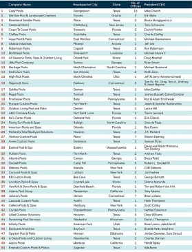 Cody Pools has once again taken the top spot, having only gained strength the past couple years after acquiring two other highly ranking PSN Top 50 Builders — Phoenix-area’s California Pool and Landscape, and Platinum Pools of Houston, Texas.