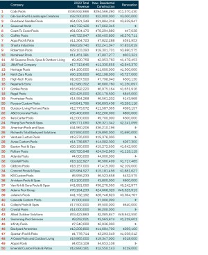 Collectively, these companies built 11,682 pools and earned more than $1.64 billion in 2022. Residential pool/spa construction accounted for nearly $1.37 billion of that. They also employ 4,173 full-time, permanent staff members.