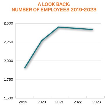 Staffing growth reflected the incline seen in revenues during the pandemic years. Since reaching the COVID-induced peak in 2021, the companies have retained almost the same number of employees, with 2,416 this year, compared with 2,432 in 2023.
