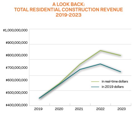 Different from the previous trends, we see here that renovations were still on an incline last year. The builders reported $61.2 million in renovation revenue last year, compared with $57.3 million in 2022. This reflects an almost 7% uptick.