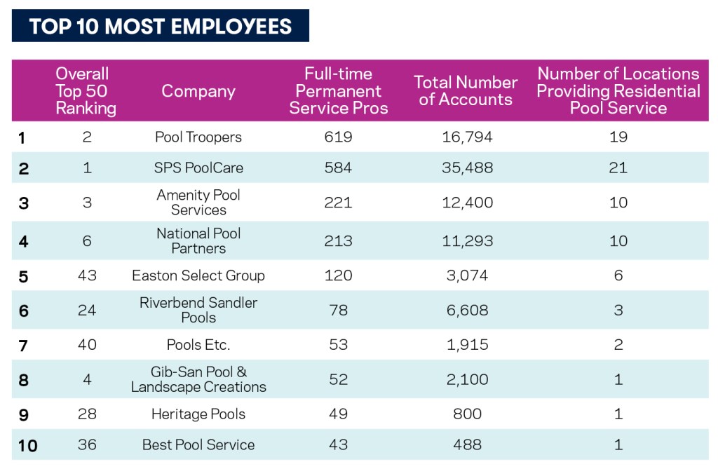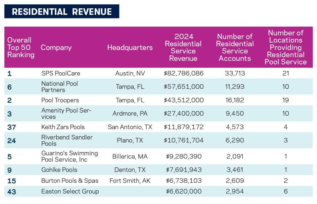 Locations Providing Residential Pool Service: 30