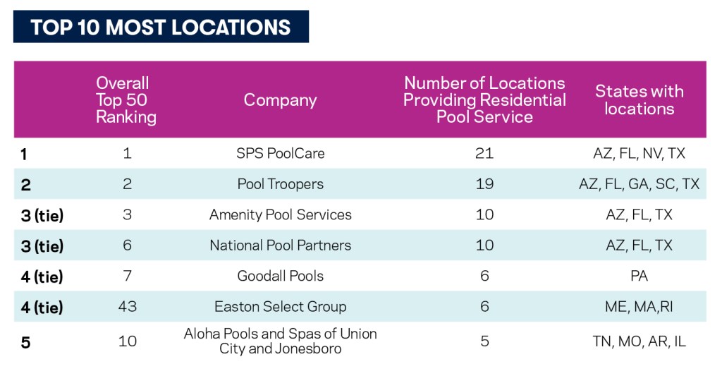Locations Providing Residential Pool Service: 48