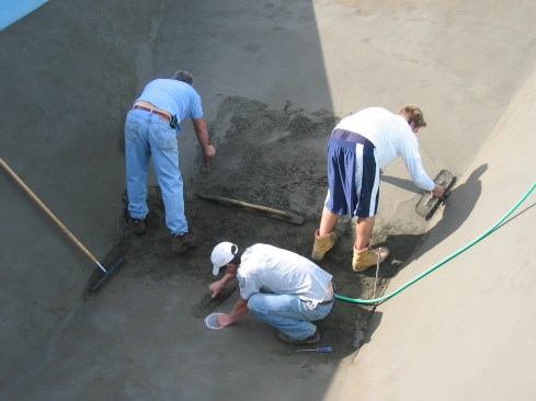 “They’re accustomed to doing sidewalks and driveways, so they dump it quick,” Lenz says. “A pool requires a little more time.”