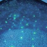 A) Starry, starry night: This pool features twinkling fiberoptic stars, a tiled perimeter and sun shelf. Built last year, the pool has depths ranging from 3.5- to 7.5 feet. The project posed an unusual challenge, says James Atlas, co-owner of Platinum Poolcare Aquatech, because the fiberoptic network needed to be protected from damage in case the pool surface ever had to be redone. To address that concern, a circular indentation was made in the pool floor, with enough fiber stored inside to reinstall the star system in the future, if needed. In addition, special care was taken to avoid damaging the small fiberoptic stems holding the stars. It took three weeks to install the 1-by-1-inch tiles, made by Materials Marketing; the entire project took four months.