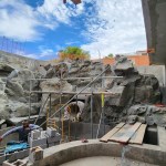 The grotto, with a bar, bathroom and other amenities, has made plenty of progress. All structural floors, walls and columns are in place. We’re starting to build the roof, which is a cast-in-place 16-inch-thick floor that sits across the top. To do that, we are setting up what we call a dance floor scaffold, where we will work as we pour the roof. Eventually, we’ll wrap it in faux boulders, along with trees and plants to make it look like a natural environment.