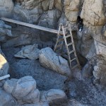 The slides are assembled mostly up to the top of the grotto now. One of the slides is closed-flume. On that one, we have the bottom half of the flume in place. Next, we’ll put the top on and seal everything together. We have completed the concrete and encased the portion that’s below-grade, and next will build the upper grotto rock features to reach the slide entrances. The rockwork down into the basement water feature is done, with the rock abovegrade yet to be finished.