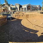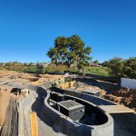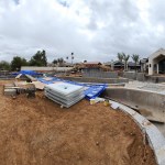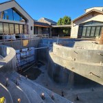In my last update, the main body of the pool had been shotcreted. Since then, we have already placed the palm trees that go in the middle of the pool, and set them in their planters. We did this early while easy access was still available. If we had waited until now, we’d have to set a crane hundreds of feet away on the other side of the house.