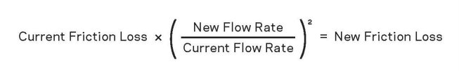 2. Size the pump properly. Knowing what you are working with underground is a huge advantage in properly sizing and setting up filtration pumps. Most pumps are set up with pressure ports on the suction and pressure sides of the pump. To size a pump, use a vacuum gauge on the suction side and a pressure gauge on the pressure side. Run the pump at full prime and RPMs and record each measurement. Watch out for units of measure — most pump curves are in feet of head (ftH₂0). So if your suction (vacuum) gauge is measuring inches of mercury (inHg), multiply by 1.13 to get ftH₂0. If the pressure gauge is in pounds per square inch (psi), multiply by 2.31 to find the ftH₂0. Now add these two numbers together to give you the total dynamic head for that flow rate. Then use this formula to calculate the new friction loss at different flow rates: