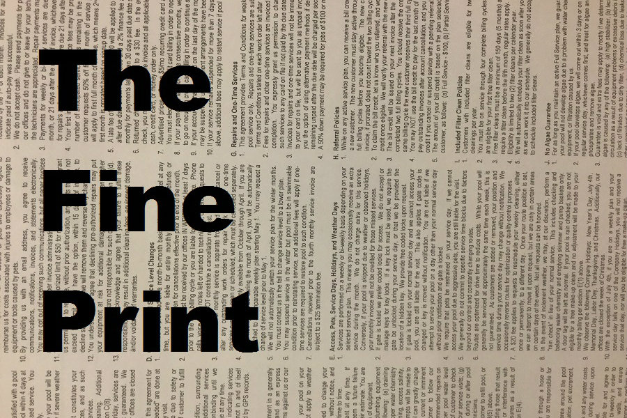 No detail is too small to address in the fine print. Mine happens to be 6.5 Arial Narrow font, which keeps the text to a single page. I recommend that your contract not exceed two pages.