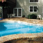 8. The liner’s in place, the pool filled with water, and the brick deck has been installed. The project is complete.