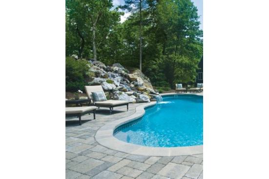 2010 Masters of Design: Fiberglass PoolsJim McGill | Cherry Hill Pool & Spa + Jason Merck | Triad Associates Inc.Natural stone, chiseled from this site’s rocky embankment, forms a waterfall that looks right at home in the rugged setting.