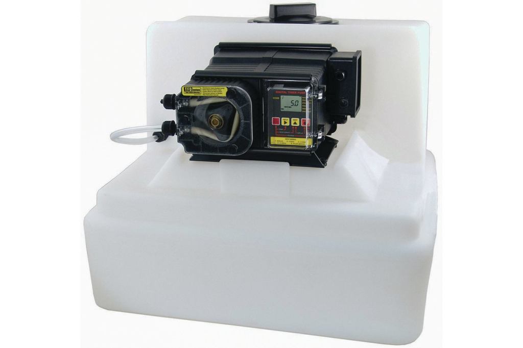 Blue-White’s Star III Chlorinator and Tank System comes equipped with the FLEXFLO Peristaltic Chlorinator of your choice. The compact and efficient tanks, available in 7-, 15- and 30-gallon capacities, are made of extra-heavy polyethylene, have UV inhibitors and 0.30-inch-thick walls. The precise output control adjustment allows for a wide range of feed rates, up to 124 gpd/8.45 lph, with a maximum working pressure reaching 100 psi/6.9 Bar.