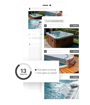 A good software can also provide the opportunity to upsell using interactive features that allow customers to easily add optional items to their quote, using a “recommendations” or a “you may also like” section. For example, spa customers can choose a cover lifter or cabinet color for the hot tub.