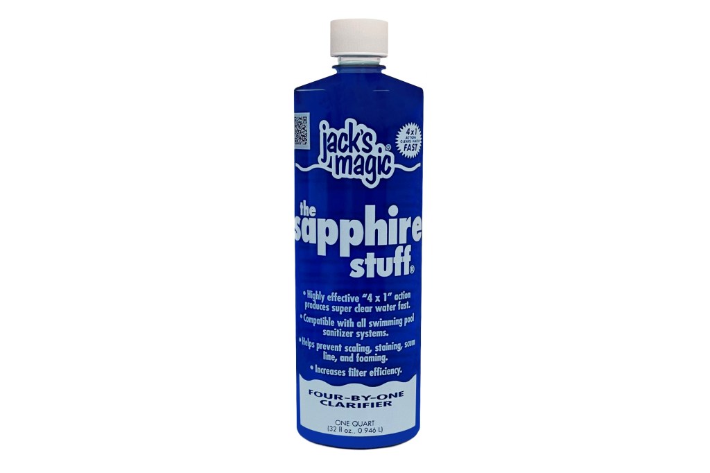 The Sapphire Stuff is formulated to produce super clear water, combining a flocculant, clarifier, sequestering and chelating agents in one product. It helps prevent scaling and scum line buildup in pools and spas and removes particulate matter that can cause staining and discoloration.