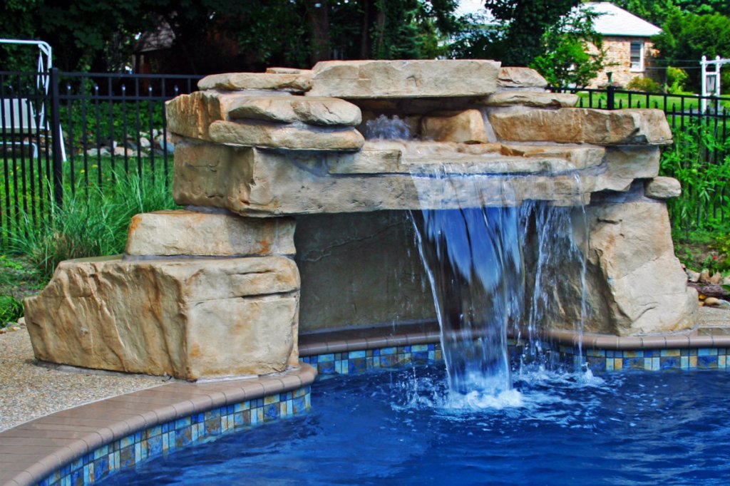 RicoRock has improved its Loveseat Grotto — a structural waterfall kit mortared together for a one to two day installation. Concrete backfill of the back wall creates a structurally sound platform that can be used as a jump platform. The new 9-foot wide grotto piece allows for the installation of up to a 6-foot bench.