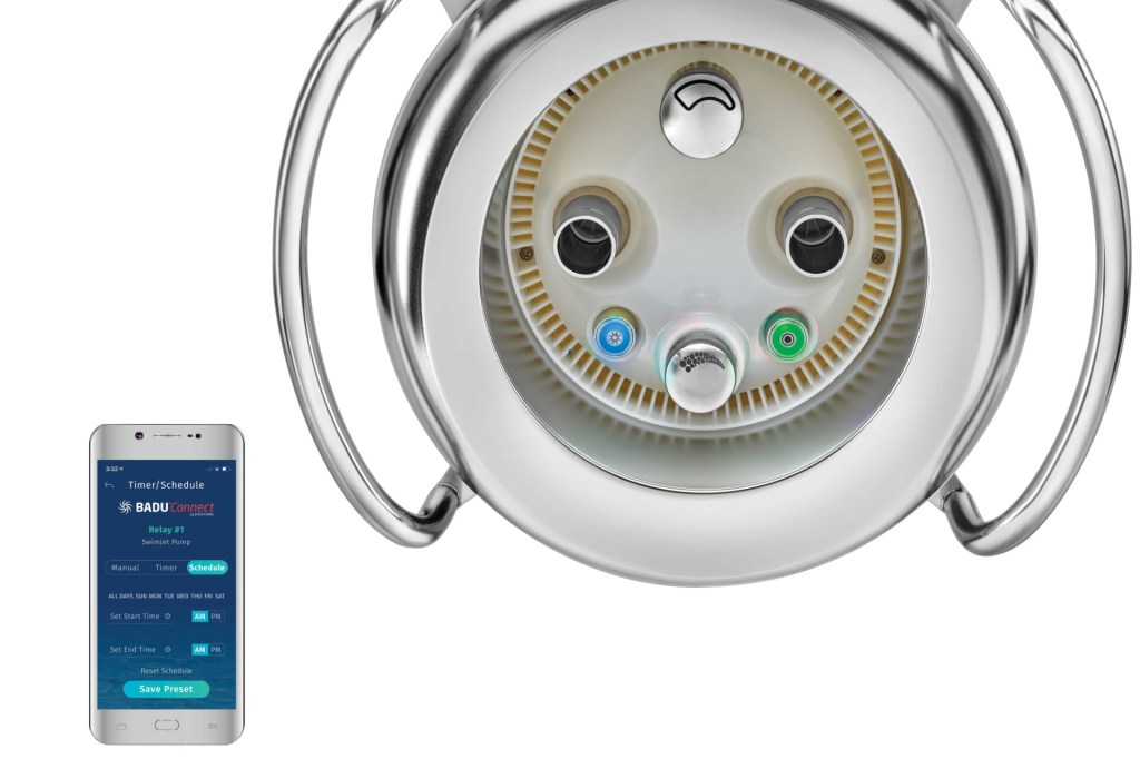 As of January 2020, Speck Pumps — Pool Products will offer new LED touch buttons for all the in-the-wall BADU SwimJet Systems. The control box has also been redesigned with new digital circuit boards. The new control boxes will come with built-in Wi-Fi, allowing users to connect to the new BADU Connect App.