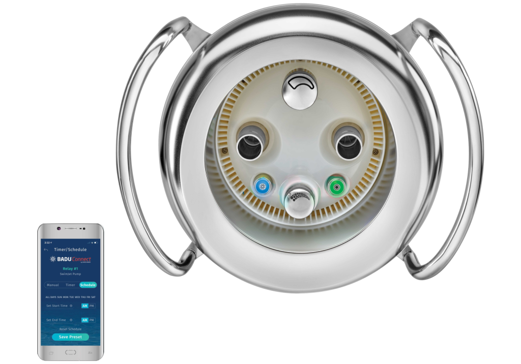 The in-the-wall BADU SwimJet Systems now come with new LED touch buttons; redesigned control box with new digital circuit boards come with built-in Wi-Fi to connect to the BADU Connect App.