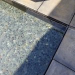Most of the yard falls within an invisible grid. The only exception — the Ipe deck that appears to float. The offset position and a 12-inch cantilever over the water enhance the illusion of a floating dock. Above right, a set of scuppers at the end of the raised wall provide water movement for those across the way.