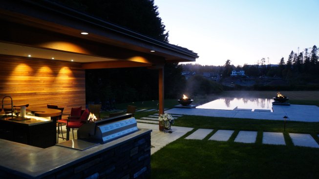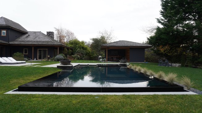 At least as important to Jay as the functionality was the appearance. He wanted a highly reflective body of water with fire accents.