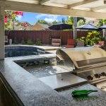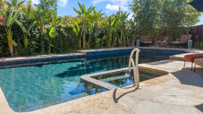 He chose to leave the pool structure intact, but tore out the rest of the backyard so he could add a backyard kitchen and lush tropical landscape. The vessel itself would be refinished.