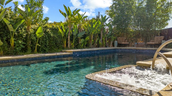 “The main thing was the aesthetics of the whole yard and changing a really plain, basic ’70s pool into a tropical paradise,” Gallo says.