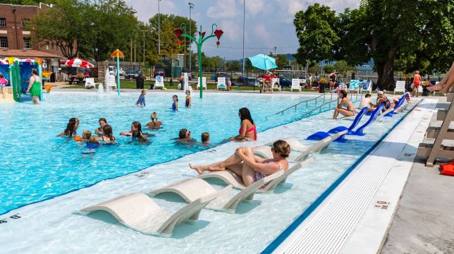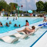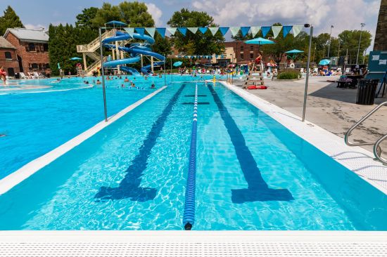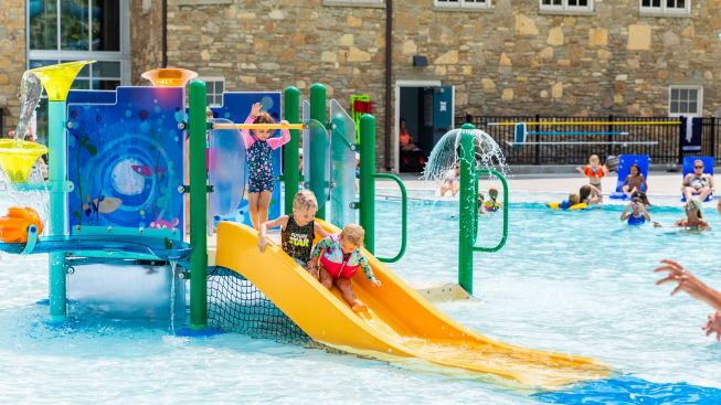 Taking advantage of the pool’s size, converted what had been a plain beach-entry pool into a multi-use water playground.