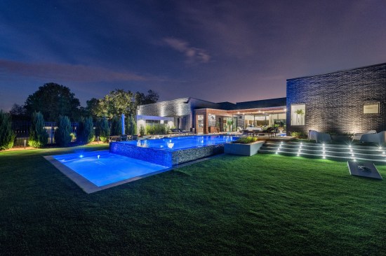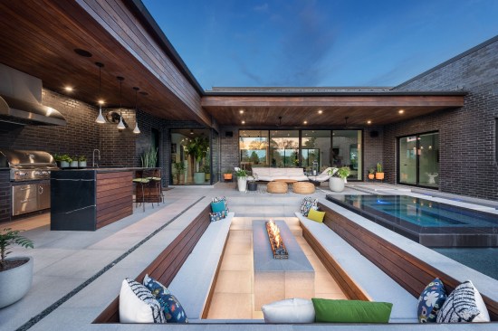 A wider body of water near the home, with stepping stones to walk across, creates the sense that the pool is built over water. This strategy also allowed the team to place high-use features, such as the spa and sunken fire pit, closer to the living quarters. That not only made these destinations more accessible and protected, under the covering. It just keeps these areas front-of-mind.