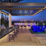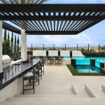 The other end of the pool narrows to a single swim lane, with a swim-up bar to the side , maximizing both the pool’s length and the functionality of that area