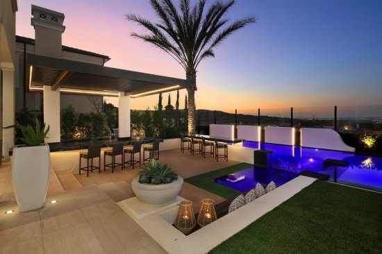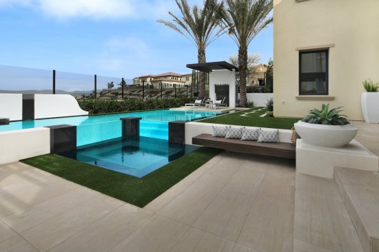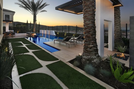 This family requested a luxurious resort destination in their backyard. Since the home came in a Tuscan style that dominates certain areas of Orange County, Calif., designer Justin Fox decided to give the yard what he calls a transitional look — one that can blend with traditional styles but offers modern or contemporary touches.