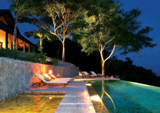 The tropical house sat on the Costa Rican coast. Sugar cane ceilings and beams made of local Guanacaste wood could be seen throughout, and the layout was very open.