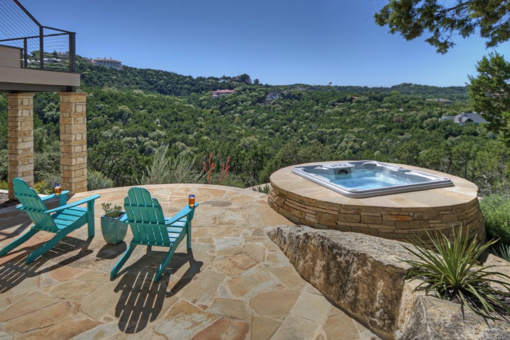 This West Austin backyard simply wasn’t living up to its potential: An existing hot tub sat beside worn flagstone and sparse landscaping. The homeowners wanted an outdoor living space to match the beautiful view.