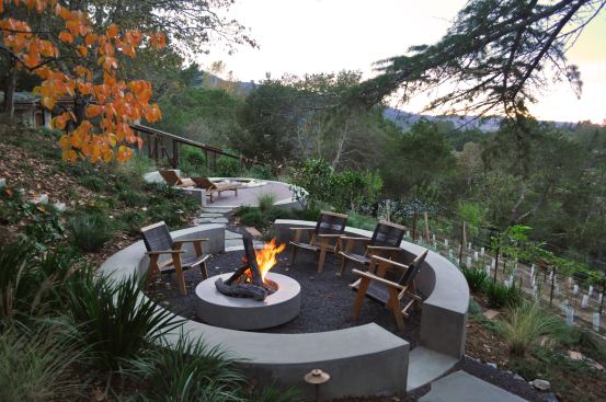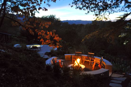 Elliptical eyes: As part of an overall remodel, the homeowner brought in Joseph Huettl to completely redesign the yard space around the Craftsman-esque home. The spa and firepit were requested by the client to serve as the highlight of the backyard. The elliptical space overlooks a vineyard and itself can be viewed from the home’s deck above. Huettl wanted the owner to see a strong and interesting geometric form when viewing the spa area. “A lot of the time we’ll do more straight-line elements,” says Huettl. “At this site, with the oak trees, I wanted it to feel more naturalistic.”